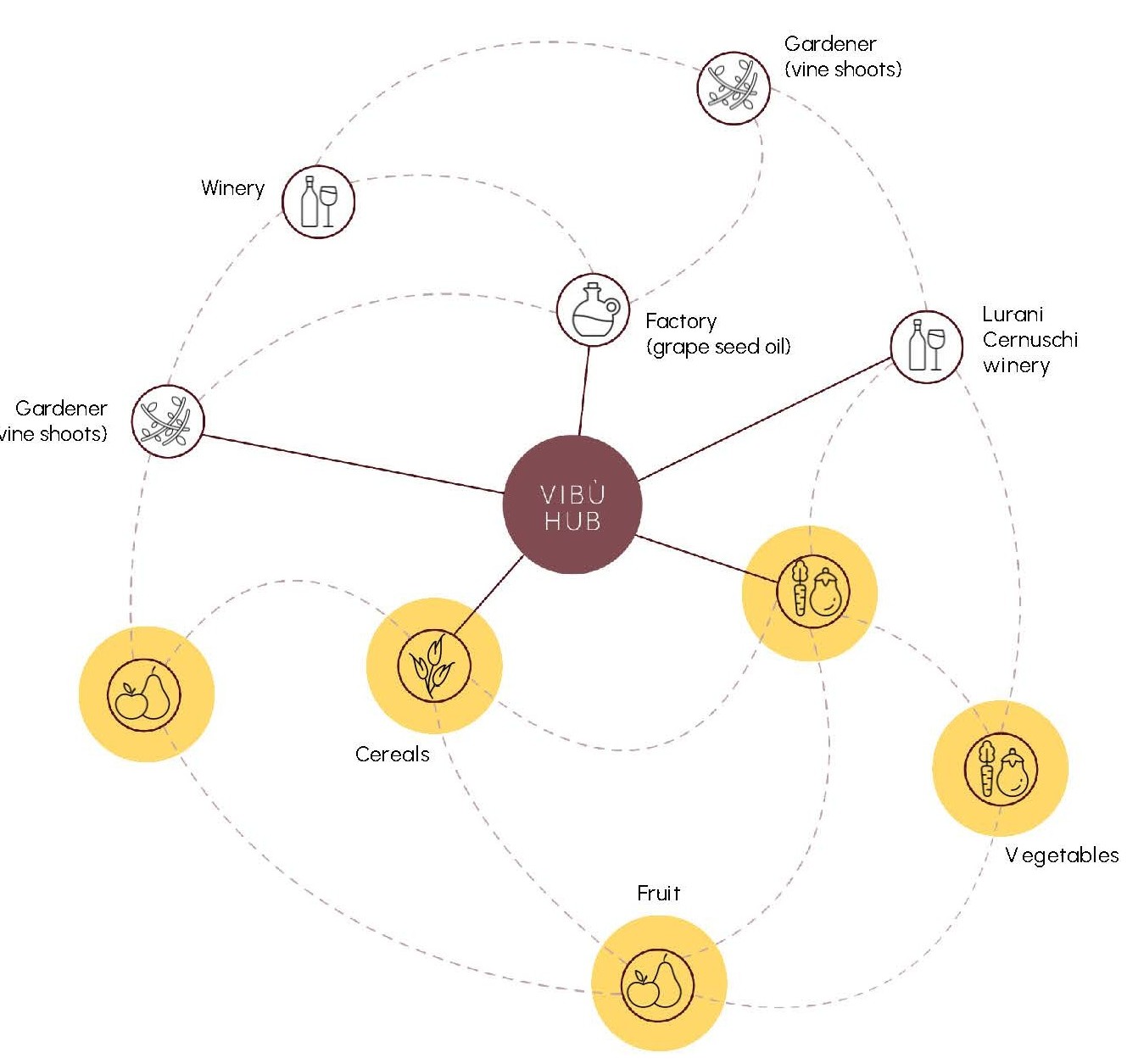 A shared space for cultivating and producing Vibù, serving as a hub for collecting waste from local wineries and other organic waste sources, creating opportunities for broader reuse and circular innovation.